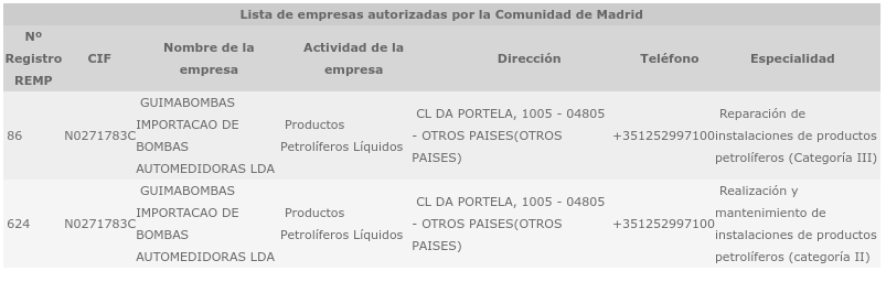 Guimabombas como Instalador e Reparador de Combustíveis Líquidos na Comunidade de Madrid